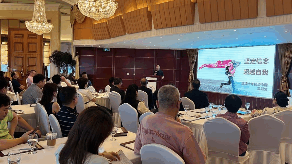 近日,由中国国际贸易学会指导,中国国际贸易学会金融文化贸易促进工作委员会、坚持企业家俱乐部主办的“金贸大师说”——“十年徒步中国:用脚丈量生命的厚度”雷殿生专场分享会圆满落幕。活动吸引了来自多个领域的近百位嘉宾出席,以行者之步丈量文化厚度,以信念之力启迪时代对话。共同探讨“文化铸魂、精神赋能贸易”的新路径。